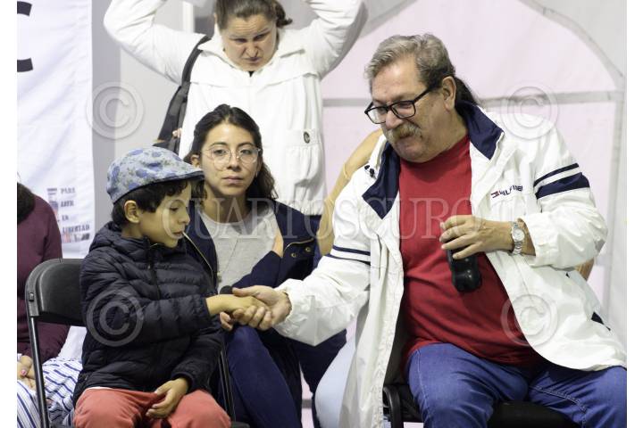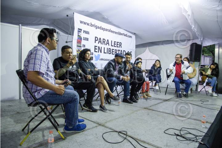 CIUDAD DE MÉXICO, 09AGOSTO2018.- Paco Ignacio Taibo II, director del Fondo de Cultura Económica (FCE); Citlalli Hernández, senadora federal de Morena, jóvenes y niños, participación en las actividad de improvisación de lectura como parte de las actividades de la 10 Feria del Libro de la organización Para Leer en Libertad ubicada en avenida Paseo de la Reforma. FOTO: MARIO JASSO /CUARTOSCURO.COM