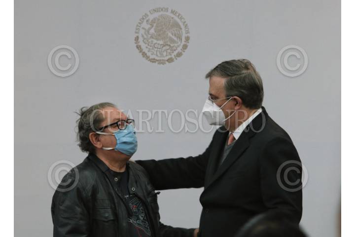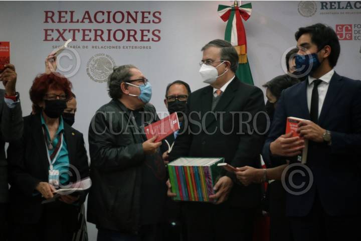 Marcelo Ebrard Casaubon, secretario de Relaciones Exteriores (SRE) y Paco Ignacio Taibo II, director del fondo de Cultura Económica (FCE) presidieron la entrega de la colección “21 para el 21” del FCE a la Secretaría de Relaciones Exteriores.