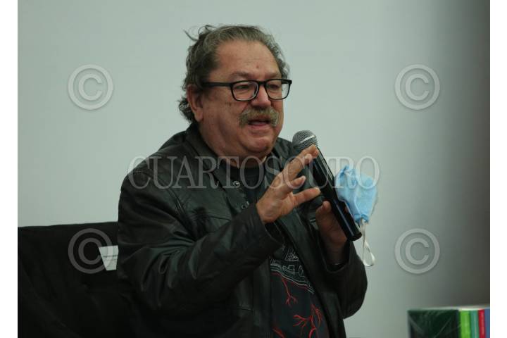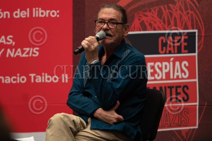 Paco Ignacio Taibo II, director Del fondo de Cultura Económica (FCE) durante la presentación del libro, Café, espías, amantes que se llevo a cabo en el Museo de la Ciudad.