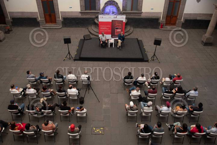 PUEBLA, PUEBLA, 17AGOSTO2019.- Paco Ignacio Taibo II, director del Fondo de Cultura Económica, impartió una conferencia de prensa con motivo del Encuentro Cultural que incluye un tendido de libros en el Centro Cultural Universitario (CUC) de la Benemérita Universidad Autónoma de Puebla (BUAP). FOTO: MIREYA NOVO /CUARTOSCURO.COM
