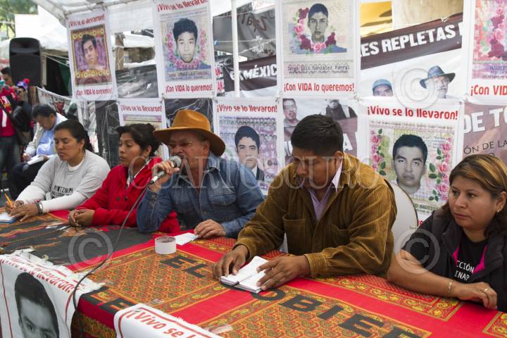 CIUDAD DE MÉXICO, 23FEBRERO2017.- Una comitiva de los padres cuyos hijos fueron secuestrados y desaparecidos el día 26 de septiembre del año 2014, en Iguala Guerrero, anunciaron en conferencia de prensa que las acciones de los llamados "padres de los 43 de Ayotzinapa" emprenderán protestas más duras y contundentes para exigirle a las autoridades la localización de sus hijos. El anunció lo realizaron en el campamento instalado afuera de la Procuraduría General de la República. FOTO: MOISÉS PABLO /CUARTOSCURO.COM