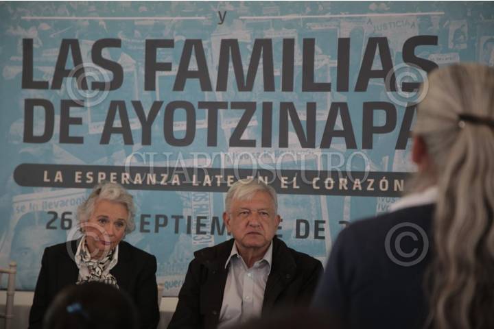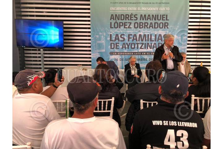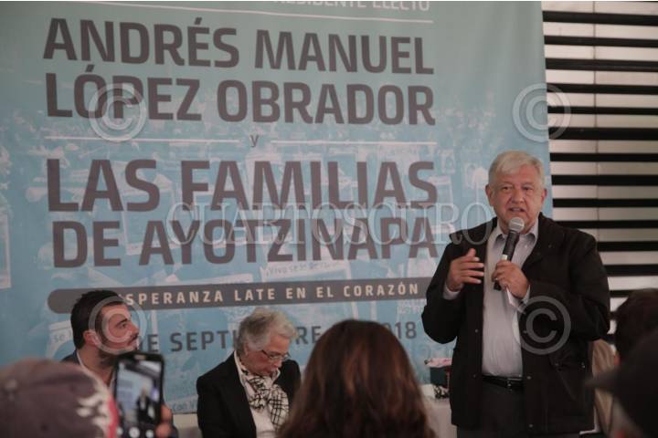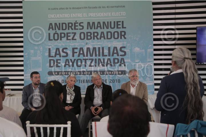 CIUDAD DE MÉXICO, 26SEPTIEMBRE2018.- El Presidente Electo Andrés Manuel López Obrador se reunió con los padres de los 43 normalistas desaparecidos hace cuatro años en Iguala, Guerrero, los jóvenes estudiaban en la normal "Raúl Isidro Burgos" en Ayotzinapa, hasta la fecha aún no hay certeza de su paradero. El encuentro se realizó en el Museo Memoria y Tolerancia. FOTO: CUARTOSCURO.COM