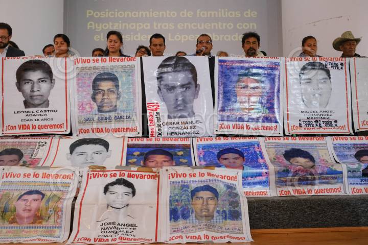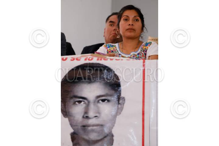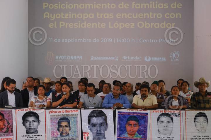 CIUDAD DE MÉXICO, 11SEPTIEMBRE2019.- Padres de los 43 estudiantes normalistas desaparecidos de la Escuela Rural "Isidro Burgos" de Ayotzinapa, Guerrero, ofrecieron una conferencia de prensa en la que informaron sobre su posicionamiento después de una reunión con el Presidente Andrés Manuel López Obrador, quién acordó mantener una reunión bimestral con ellos para dar seguimiento a la Comisión de la Verdad y el diálogo con elementos de la Defensa Nacional para esclarecer justicia en el caso. Se realizó en el Centro Prodh. FOTO: GRACIELA LÓPEZ /CUARTOSCURO.COM