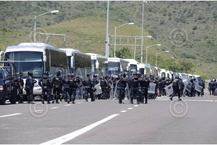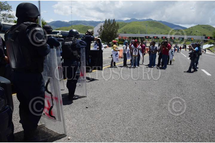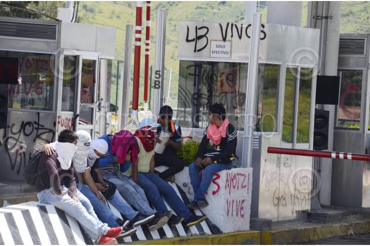 CHILPANCINGO,GUERRERO, 20SEPTIMBRE2016.-Normalistas de Ayotzinapa y algunos Padres de los normalistas desaparecidos en Iguala, tomaron la caseta de peaje de Palo Blanco en la autopista del Sol y dieron paso libre a los usuarios. Al lugar arribaron policías federales con equipo antimotines. Felipe de la Cruz y el abogado Vidulfo Rosales Sierra, anunciaron que con esta actividad iniciaron las acciones por el segundo aniversario de la desaparición de los 43 estudiantes de la normal rural Isidro Burgos. FOTO: JOSÉ I. HERNÁNDEZ / CUARTOSCURO.COM