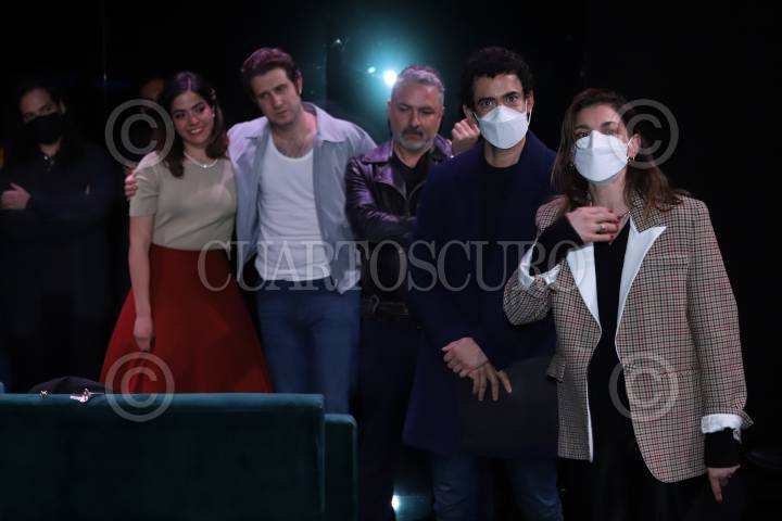 Luis Gearardo Méndez, Mauricio Sánches Navarro, Adriana Llabrés, Mauricio Isaac y Nacho Tahhan durante la revelación de placa por el fin de temporada de la obra de teatro “Orgullo” en el Foro Lucerna.