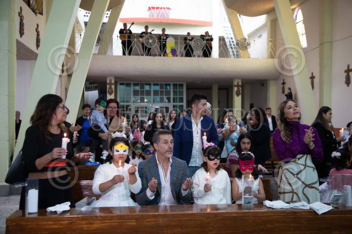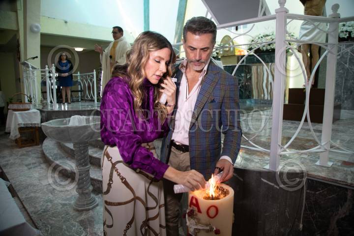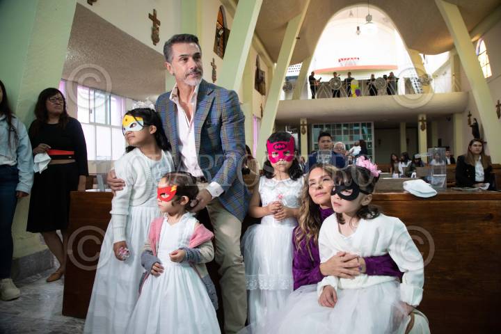 CIUDAD DE MÉXICO, 11NOVIEMBRE2023.- Sergio Mayer y su esposa Isabella Camil asistieron como padrinos de honor a un bautizo masivo con niños y niñas adolescentes rescatados de situaciones vulnerables, en la Iglesias Señora del Sagrado Corazón. FOTO: EDGAR NEGRETE LIRA/CUARTOSCURO.COM