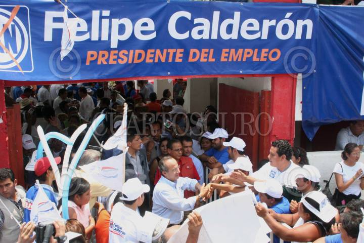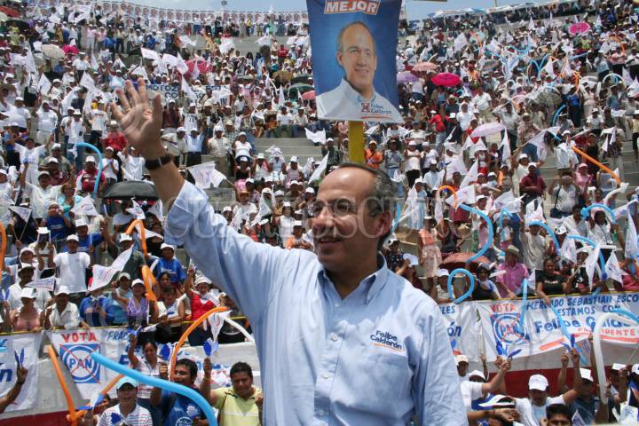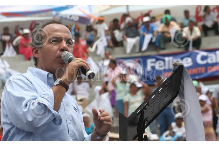 TAPACHULA, CHIAPAS 18MAYO2006.- El candidato del PAN a la Presidencia de la República. Felipe Calderón, realizó un mitin de campaña como parte de su gira por esa entidad en la Plaza de Toros la bien paga. FOTO: Alfredo Guerrero/CUARTOSCURO.COM