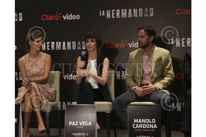 CIUDAD DE MÉXICO, 23MAYO2016.- Las actrices Stephanie Cayo, Paz Vega, y Manolo Cardona durante la presentación de la serie "La Hermandad", que es dirigida por el director Carlos Bolado y producida por Manolo Cardona. es una serie policiaca y sera trasnmitida por televisión de paga. FOTO: ANTONIO CRUZ /CUARTOSCURO.COM