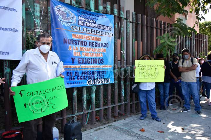 Maestros cargando pancartas donde se exige el pago del periodo septiembre-diciembre.