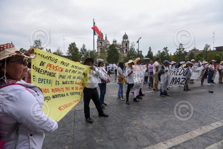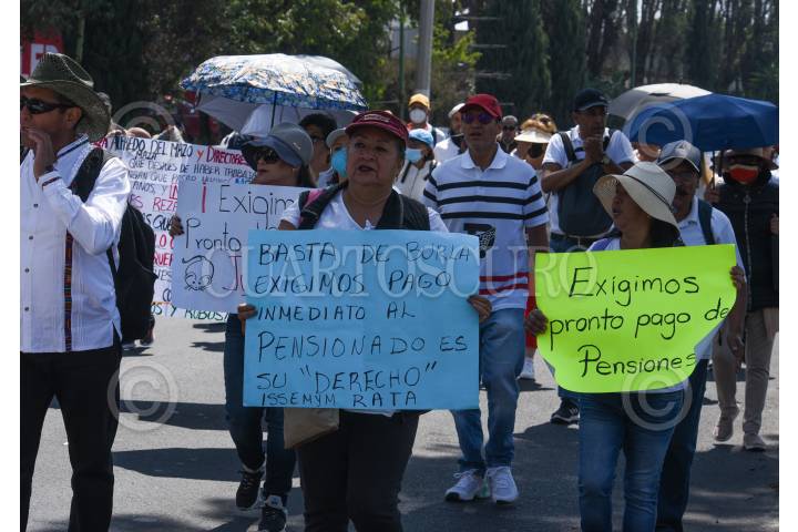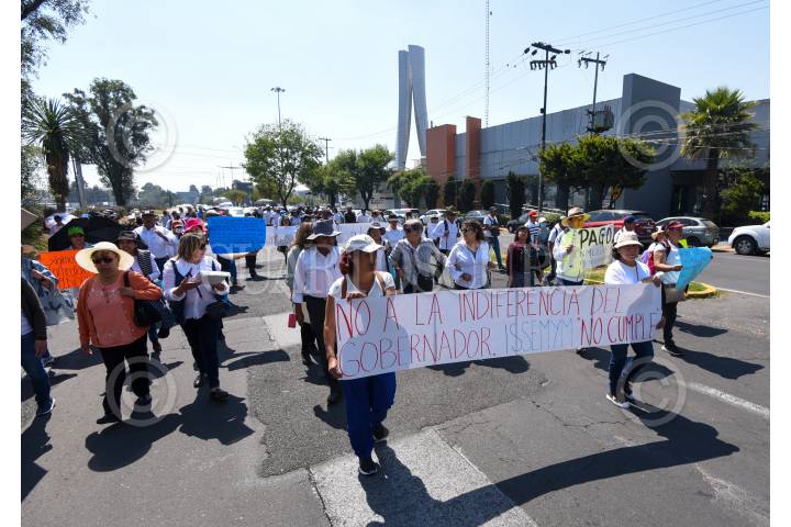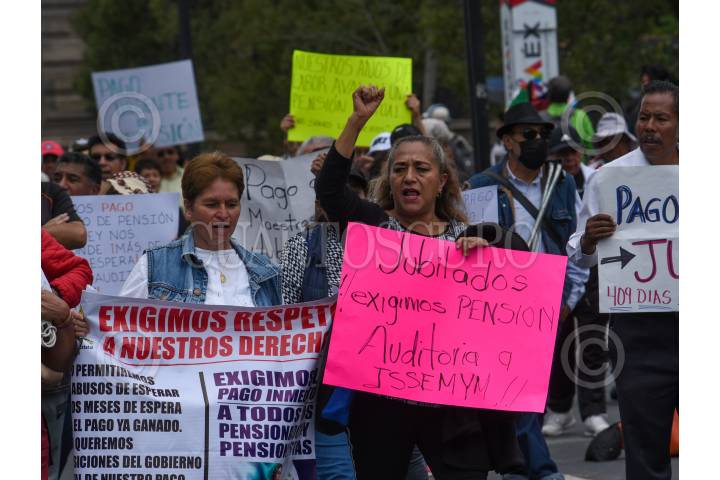 Jubilados y pensionados del ISSEMYM marcharon en Toluca exigiendo el pago de sus pensiones que en algunos casos tiene hasta 2 años sin pagarse.