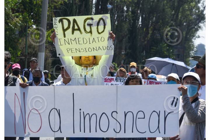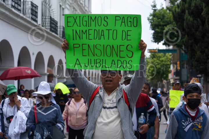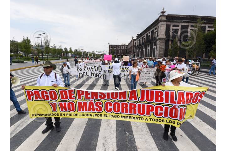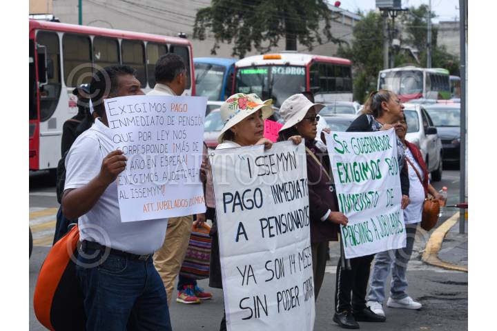 Jubilados, pensionados y pensionistas del ISSEMYM salieron a las calles de la ciudad de Toluca para exigir el pago de sus pensiones y piden un alto a la corrupción.