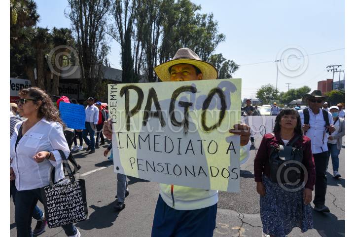 Pensionados, pensionistas y jubilados del ISSEMYM marcharon en la ciudad de Toluca exigiendo el pago de sus pensiones.