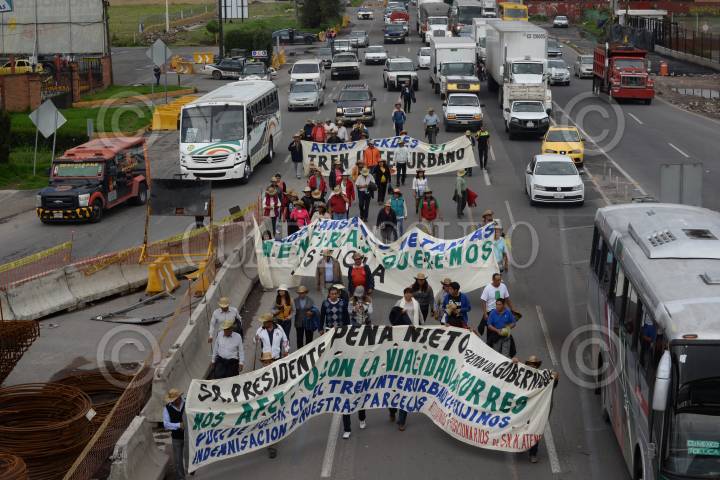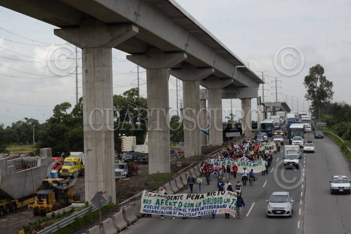 LERMA, ESTADO DE MÉXICO, 28AGOSTO2017.- Ejidatarios de San Mateo Atenco que exigen el pago de terrenos afectados por la obra del Tren Interurbano iniciaron una caminata a Los Pinos, en la Ciudad de México, para solicitar audiencia con el Presidente Enrique Peña Nieto y llegar a un acuerdo. FOTO: ARTEMIO GUERRA BAZ / CUARTOSCURO.COM