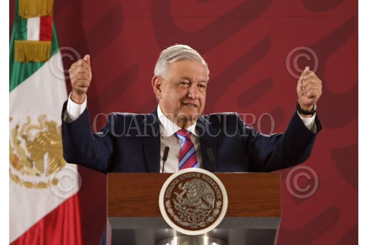 CIUDAD DE MÉXICO, 27NOVIEMBRE2019.- Andrés Manuel López Obrador, presidente de México, durante la conferencia diaria en el Palacio Nacional en la que anunció el programa “Bienvenido Paisano”. También hizo invitación a la celebración por su primer año de gobierno el próximo primero de diciembre en el Zócalo Capitalino. FOTO: ANDREA MURCIA / CUARTOSCURO.COM