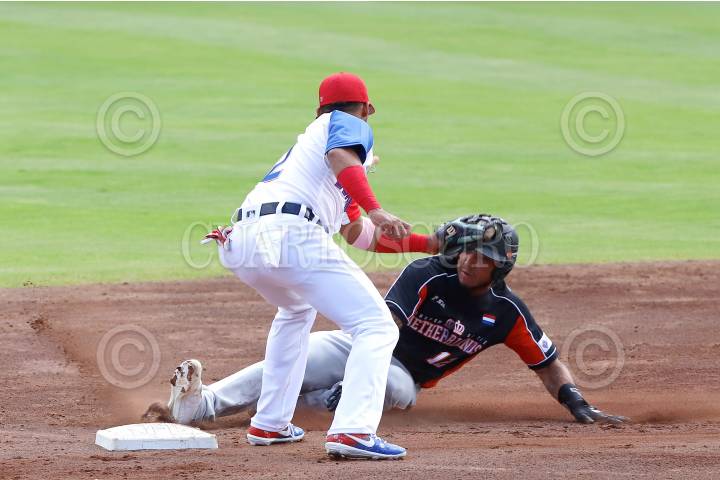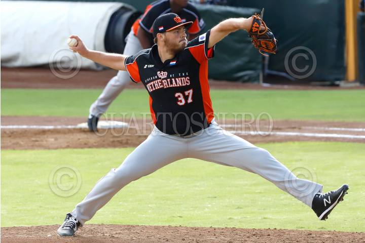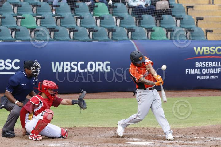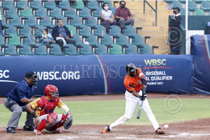 Partido semifinal del Preolímpico rumbo a Tokyo 2020, entre las selecciones de Países Bajos y Venezuela en el estadio de béisbol Hermanos Serdán.