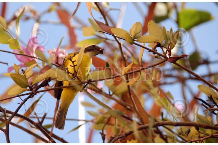 Un ave de colores negro y amarillo en medio de la floresta en la Reserva de la Biosfera Sierra de Huautla.