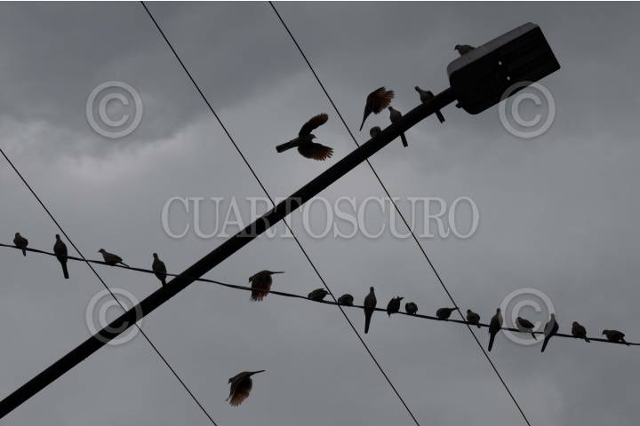 CIUDAD DE MÉXICO, 12DICIEMBRE2023.- Entre cables de luz, cocoritas se mantienen posadas en una tarde otoñal. FOTO: GRACIELA LÓPEZ /CUARTOSCURO.COM