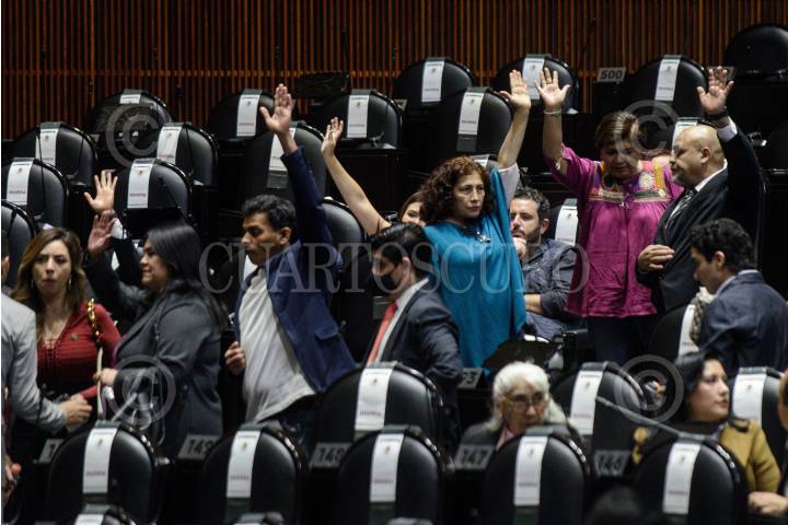 Votación del grupo parlamentario de Morena durante la sesión ordinaria de la Cámara de Diputados.