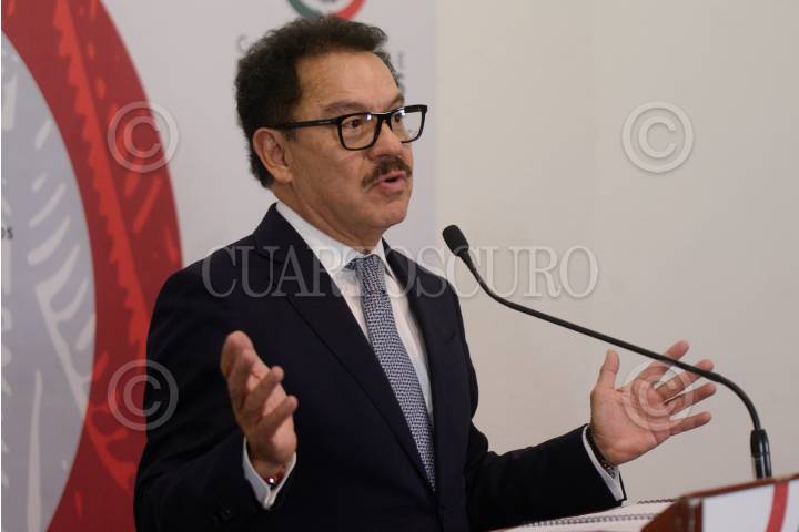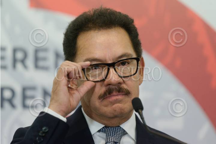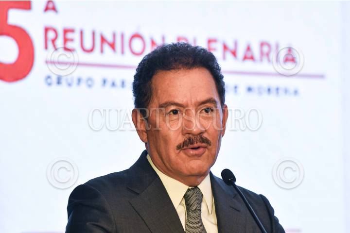 Rogelio Ramírez de la O, secretario de Hacienda y Crédito Público, durante su participación en la Quinta Reunión Plenaria del grupo parlamentario de Morena correspondiente al último año se ejercicio constitucional de la LXV Legislatura de la Cámara de Diputados. Estuvieron presente Ignacio Mier, diputado y coordinador de Morena; Leonel Godoy, y Aleida Alavez.