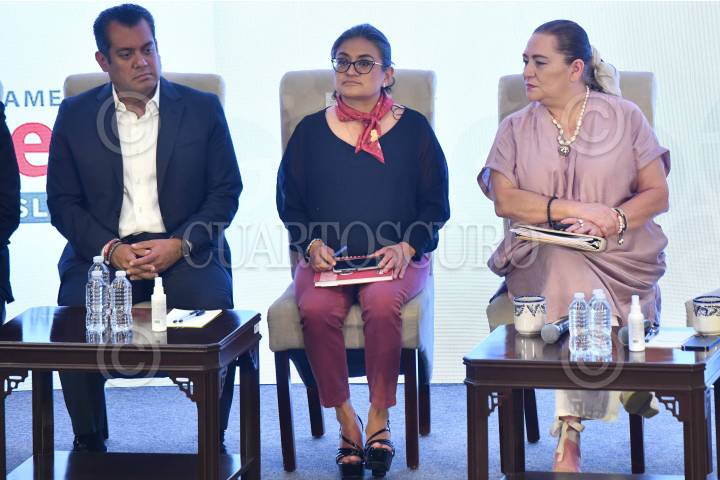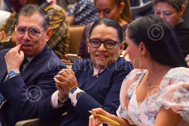 Luis Rodríguez Bucio, subsecretario de Seguridad y Protección Ciudadana; Rosa Icela Rodríguez, secretaria de Seguridad y Protección Ciudadana, y Juanita Guerra, diputada de Morena, durante la Quinta Reunión Plenaria del grupo parlamentario de Morena correspondiente al último año se ejercicio constitucional de la LXV Legislatura de la Cámara de Diputados.