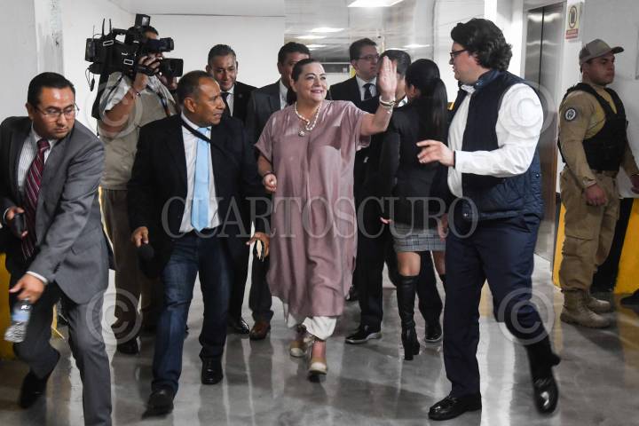Guadalupe Tadei, durante su salida de la Quinta Reunión Plenaria del grupo parlamentario de Morena correspondiente de la LXV Legislatura de la Cámara de Diputados.