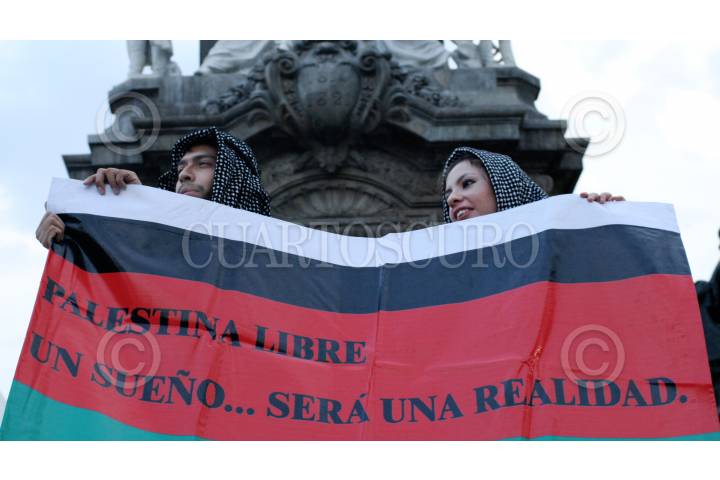 MÉXICO, D.F., 16MAYO2008.- La tarde de ayer la Coordinación "Solidaridad Por el Pueblo Palestino", realizó una protesta por los 60 años de ocupacion Israelí en territorio Palestino en el Angel de la Independencia. FOTO:ELIZABETH GREENE/CUARTOSCURO.COM