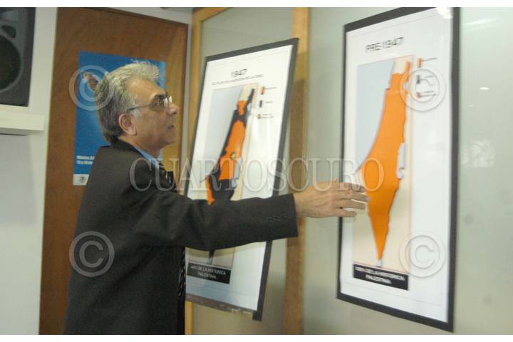 MEXICO D.F. 29NOVIEMBRE2004.- En la sede de la ONU, se realizó la ceremonia del día en solidaridad con el pueblo palestino. El embajador palestino en México, Fawzi M. Yousif acomoda unos mapas. FOTO: Germán Romero/CUARTOSCURO.COM