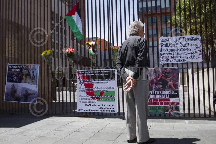 MÉXICO, D.F., 03AGOSTO2014.- Un grupo de ciudadanos se manifestaron a las afueras de la instalaciones de la Secretaria de Relaciones Exteriores para repudiar los ataques israelís en contra del pueblo Palestino en la Franja de Gaza. FOTO: GUILLERMO PEREA /CUARTOSCURO.COM
