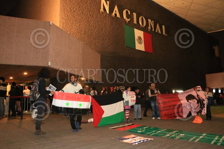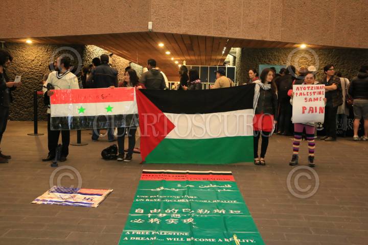CIUDAD DE MÉXICO, 30SEPTIEMBRE2016.- Jóvenes del movimiento "Mexicanos Apoyando a Palestina" se manifestaron a las afueras de la Cinética Nacional donde se presento el documental “The ocupattion of the American Mind: Israel´s Publica Relations War in the United States. FOTO: SAÚL LÓPEZ /CUARTOSCURO.COM