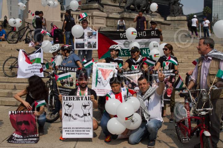 CIUDAD DE MÉXICO, 14MAYO2017.- Un grupo de palestinos avecindados en México llevaron a cabo una rodada en solidaridad con el pueblo de Palestina al cumplirse 69 años de la denominada "Nakba" o éxodo palestino que dio inicio en 1948, cuando el 78% de la población de aquel país emigró de los territorios en donde Israel implantó su Estado. Los manifestantes partieron del Ángel a la Independencia. FOTO: MOISÉS PABLO /CUARTOSCURO.COM