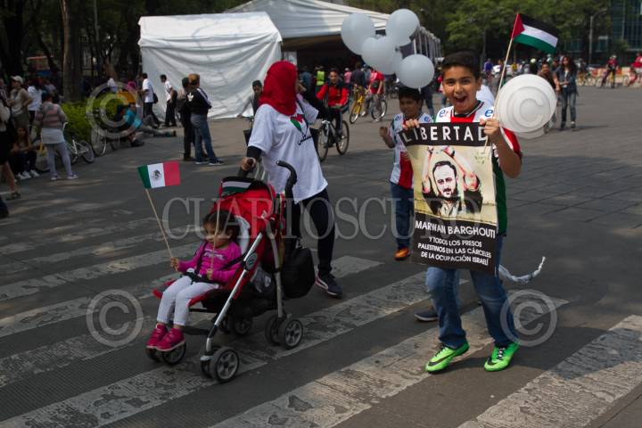 MÉXICO, D.F., 17OCTUBRE2015.- En Palestina, el ataque a la población civil es permanente, esto ha indignado por años a personas de todo el mundo. Hoy en México, una organización a fin llevó a cabo una manifestación en solidaridad con los palestinos a pie del monumento a la independencia. FOTO: DANIEL HUERTA /CUARTOSCURO.COM