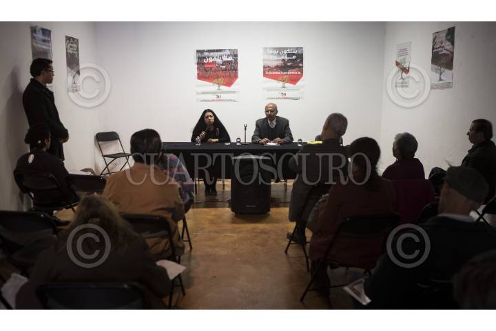 CIUDAD DE MÉXICO, 01FEBRERO2018.- Araceli Cortes de la Coordinadora Solidaridad con Palestina, y el embajador Mohamed Saadat, encabezaron una conferencia de prensa para hablar de la historia de la resistencia de los palestinos. FOTO: TERCERO DÍAZ /CUARTOSCURO.COM