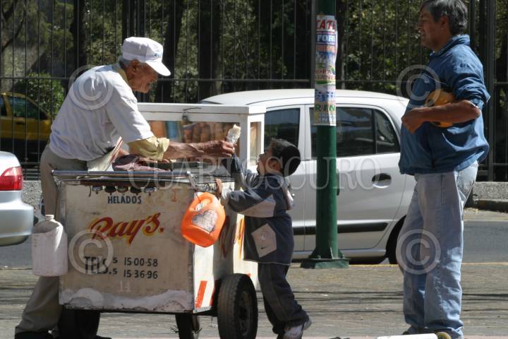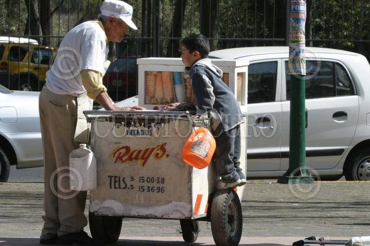 MEXICO, D.F. 16ENERO2005.- Un niño compra un helado, mientras juega con su padre en la plaza de la Ciudadela. FOTO: Sandra Perdomo/CUARTOSCURO.COM
