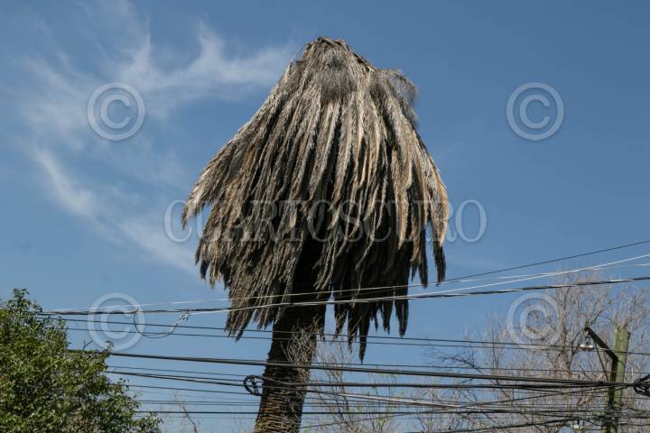 CIUDAD DE MÉXICO, 25FEBRERO2024.- Una palmera muerta en la colonia San Rafael, este tipo de árboles fueron atacados por un hongo que hace que los ejemplares contaminados mueran, se calcula que un tercio de las palmeras en la ciudad fueron afectadas. Una palmera en estas condiciones representan un peligro para los habitantes ya que se pueden venir a abajo debido a que se debilitan sus raíces. FOTO: MOISÉS PABLO/CUARTOSCURO.COM