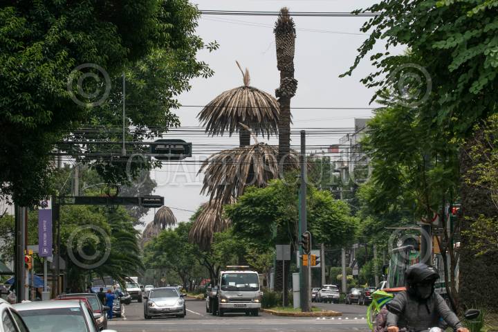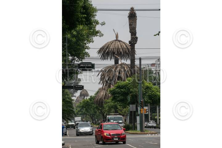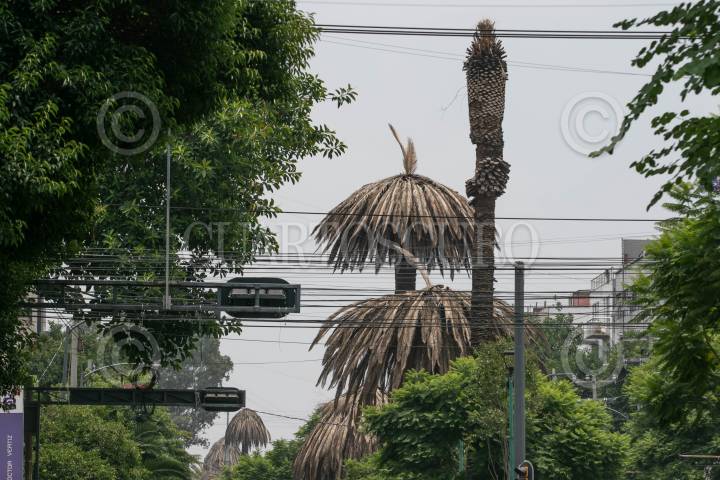 CIUDAD DE MÉXICO, 31JULIO2024.- Continúan muriendo palmeras en avenida Vértiz, debido a diversos hongos que a afectado al casi 50? los ejemplares en la ciudad. Cuando son afectados por la enfermedad las palmeras se secan, aunque el peligro es que sus raíces se debilitan y son más susceptibles a caerse. FOTO: MOISÉS PABLO/CUARTOSCURO.COM