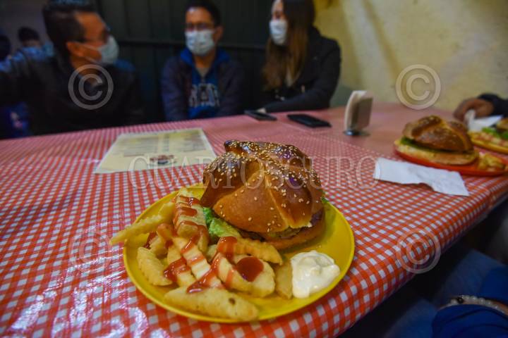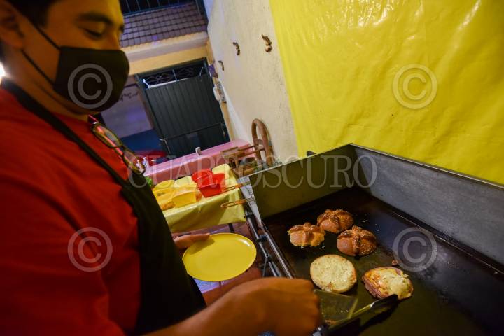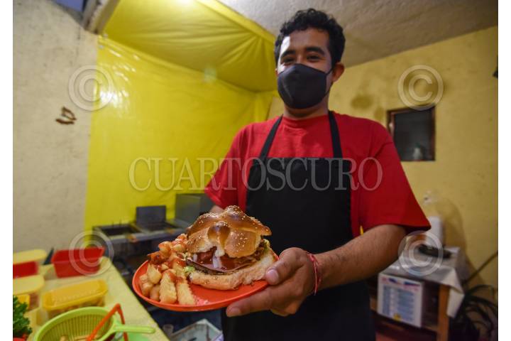 Como una forma de impulsar la economía local, preservar las tradiciones y ofrecer algo novedoso a sus comensales, Alfredo Estrada ofrece en Hamburguesas El Chino, en la delegación de Capultitlán en Toluca la hamburguesa echa con Pan de Muerto.