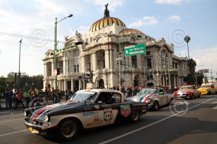CIUDAD DE MÉXICO, 15OCTUBRE2016.- Los autos participantes de la “Carrera Panamericana” de autos clásicos, llegan a la meta al Palacio de Bellas Artes. después de salir de la Ciudad de Puebla este medio día donde cientos de aficionados ya los esperaban. FOTO: ANTONIO CRUZ /CUARTOSCURO.COM