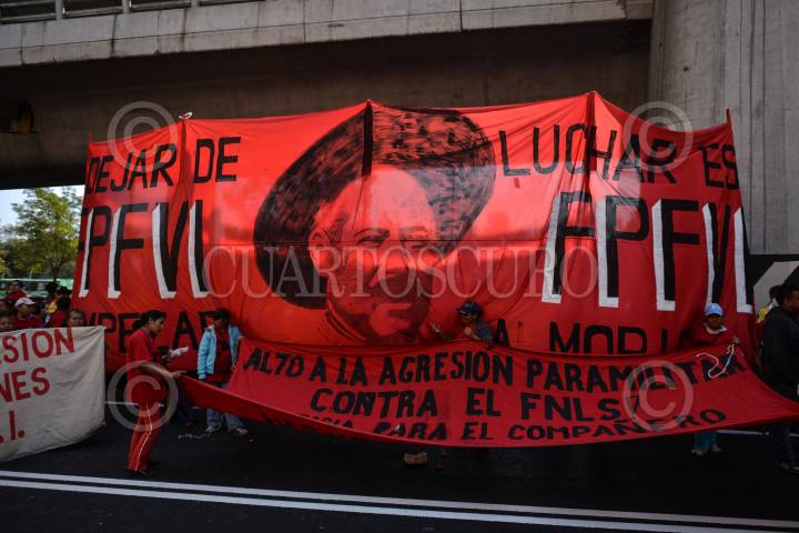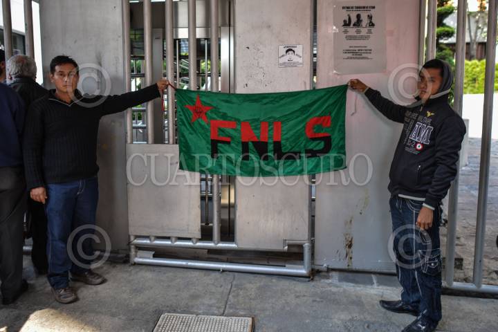 MÉXICO, D.F., 30ENERO2014.- Integrantes del Frente Popular Francisco Villa realizaron un mitin en el Monumento a la Revolución en el marco del 25 aniversario del Frente en donde demandaron libertad a los presos políticos. FOTO: RODOLFO ANGULO /CUARTOSCURO.COM