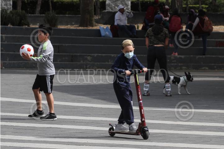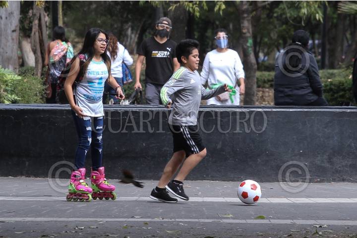 Con patines y balón, niños llegan al Parque Alameda Sur.