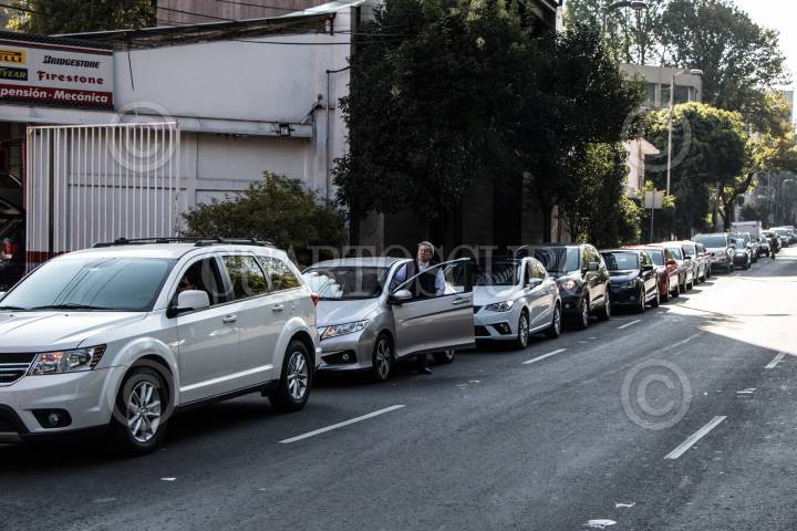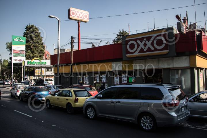 CIUDAD DE MÉXICO, 08ENERO2019.- Luego de darse a conocer que en varias estaciones de gasolina se había acabado el combustible, largas filas de automóviles se observan en algunos puntos de abastecimiento. En la imagen, una estación Hidrosina ubicada sobre la avenida Constituyentes. FOTO: MISAEL VALTIERRA /CUARTOSCURO.COM