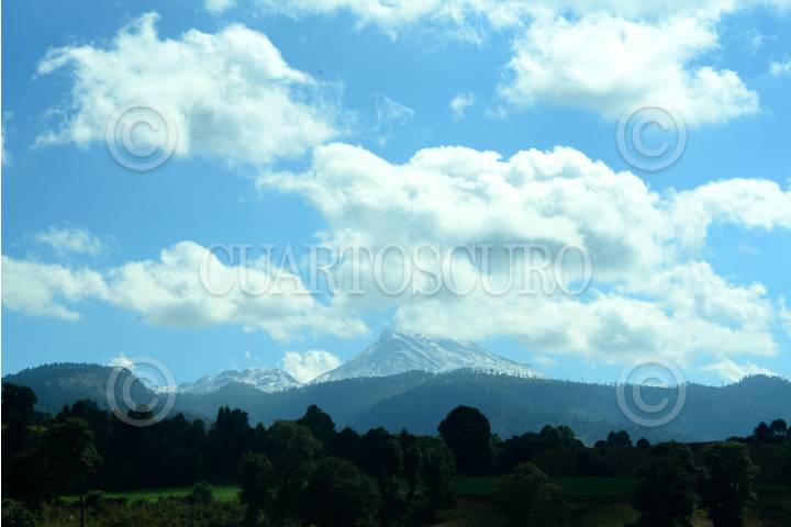 MÉXICO, D.F., 06ENERO2016.- Vista del volcán Popocatépetl nevado desde la carretera México-Puebla. FOTO: ISABEL MATEOS /CUARTOSCURO.COM