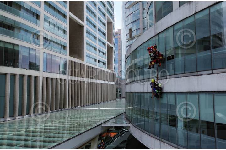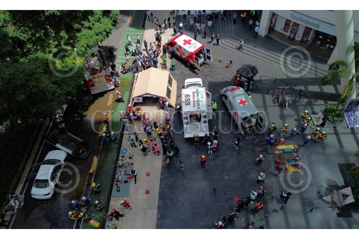 CIUDAD DE MÉXICO 19SEPTIEMBRE2025.- Se llevó a cabo el Simulacro Nacional 2025 para conmorar los sismos de 1985 y 2017. En imagen aspectos del Edificio Reforma 222 durante el simulacro en el cual se manejó una hipótesis de una magnitud de 8.1 con origen en Michoacán. En imagen toma aérea del simulacro de rescate en Edificio Reforma. FOTO:ROGELIO MORALES /CUARTOSCURO.COM