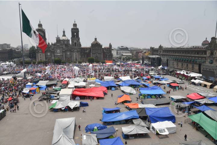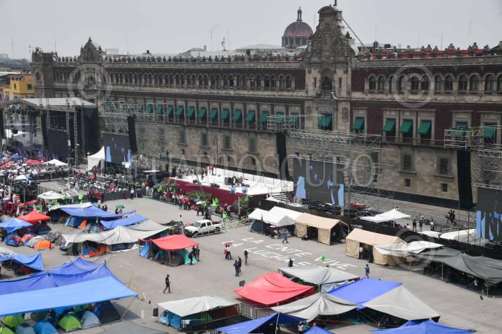CIUDAD DE MÉXICO, 29MAYO2024.- Maestros continúan en un plantón en el zócalo capitalino donde está tarde se llevará a cabo el cierre de campaña de Claudia Sheinbaum, candidata a la presidencia de la República por la alianza "Sigamos Haciendo Historia". FOTO: MARIO JASSO/CUARTOSCURO.COM