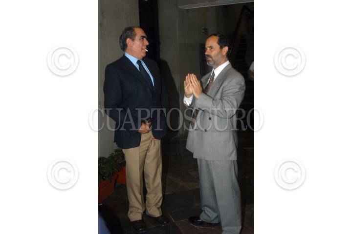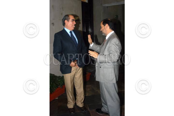 MÉXICO D.F 31AGOSTO2007.-El Senador del PRD, Pablo Gómez, se sube el sierre de su pantalón, mientras dialoga con el Senador del PAN Gustavo Madero, momentos antes del inicio de la sesión e intalacion de la nueva mesa directiva de Senado de la República. FOTO:GUILLERMO PEREA/CUARTOSCURO.COM