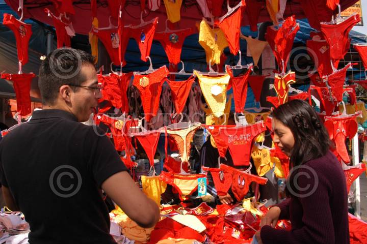 CIUDAD DE MÉXICO, 30DICIEMBRE2018.- Ropa interior principalmente de color amarillo y rojo para el dinero y el amor se vende en mercados de la Ciudad. Otros amuletos como semillas y borregos para la atracción de dinero y abundancia también se comercian. FOTO: VICTORIA VALTIERRA /CUARTOSCURO.COM