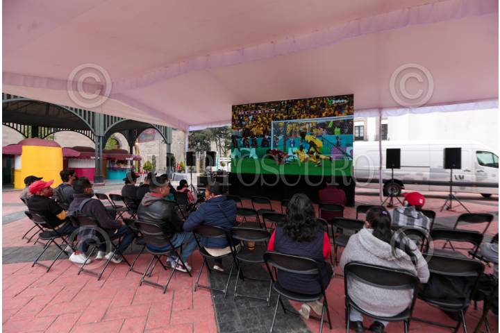 Instalan pantallas en Toluca para transmitir el partido inaugural de la Copa Mundial de Qatar muy poco público se detuvo a disfrutar del encuentro.