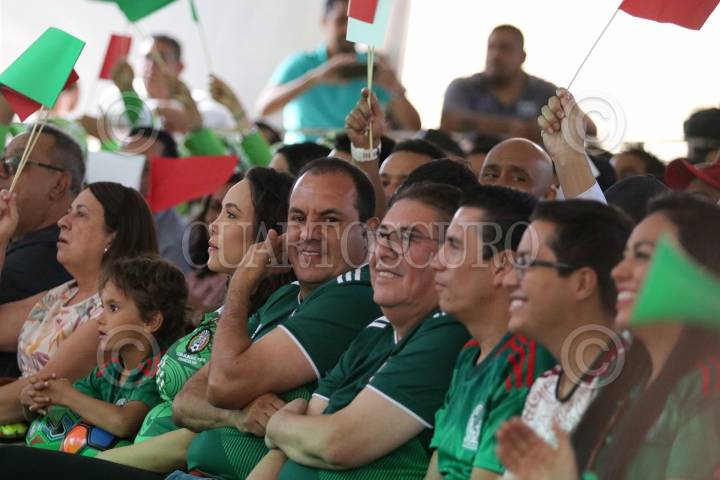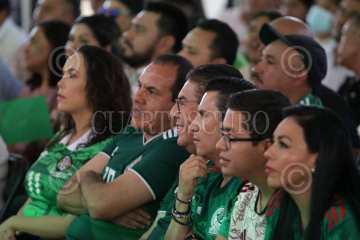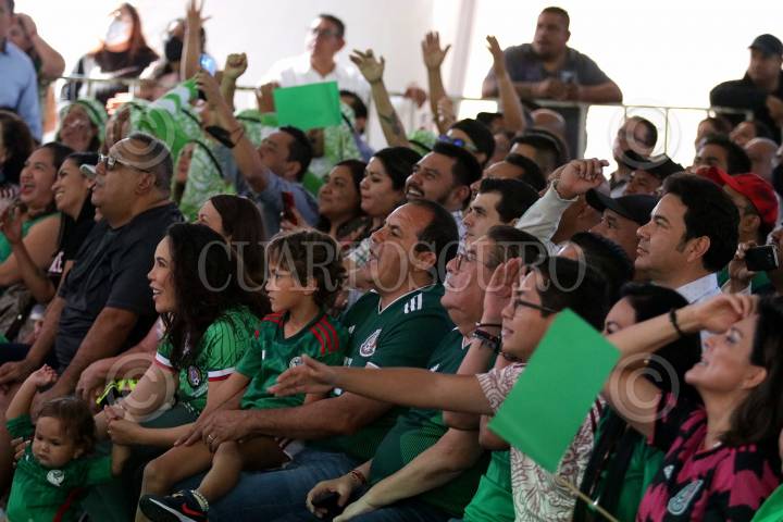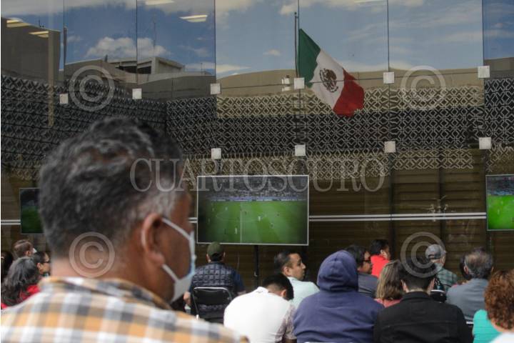 Ciudadanos de Chilpancingo observaron el partido de la Selección Mexicana vs Polonia en pantallas gigantes instaladas en las inmediaciones de la Catedral.