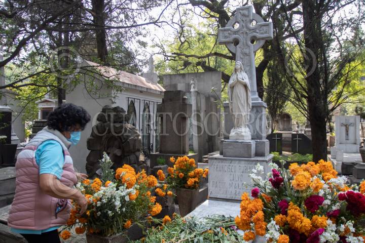 El panteón Francés, cerraraá sus puertas el próximo viernes hasta el martes, por disposición de oficial de no permitir aglomeraciones por el festejo de dia de muertos. Venta de flores de Cempazúchitl, en la entrada, del campo santo.
