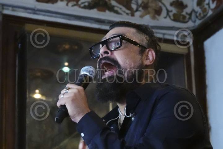 CIUDAD DE MÉXICO, 27MARZO2025.- Luis Román Ibarra "Dr. Shenka", vocalista de la banda de rock en español Panteón Rococo ofreció una conferencia de prensa en el bar La Faena con motivo de su 30 Aniversario. FOTO: GRACIELA LÓPEZ /CUARTOSCURO.COM
