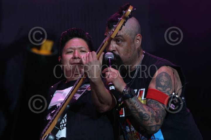 CIUDAD DE MÉXICO, 27MARZO2025.- Leonel Rosales y Darío Espinosa, bajistas de la banda de rock en español Panteón Rococo durante la interpretación de algunas de sus rolas en el bar La Faena con motivo de su 30 Aniversario. FOTO: GRACIELA LÓPEZ /CUARTOSCURO.COM